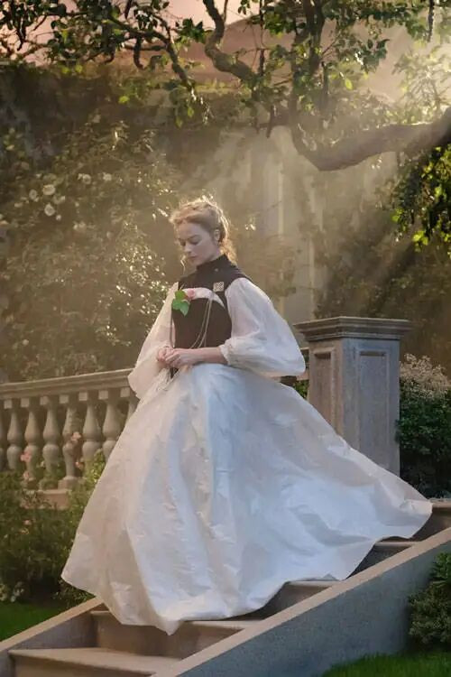 35岁的好莱坞一线女星玛格特·罗比献技仙女凯瑟琳,她的开阔造型相当秀好意思,配景也很概述。本片服装蓄意师来头很大,杰奎琳·杜兰,险些是欧洲体裁名著改编御用服装师——《自傲与偏见》《赎罪》《安娜·卡列尼娜》《小妇东说念主》的服装蓄意齐是她。