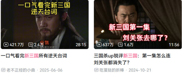 四大名著更是影视化的常青树,新《三国演义》在B站的逐帧分析视频,播放量动辄破百万,网友们依然能找出老版看得饶有利思意思,再把新版喷甘愿思横生。