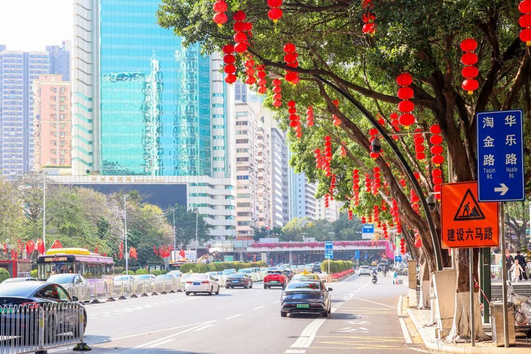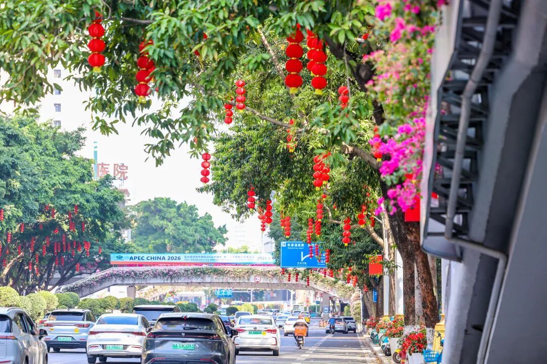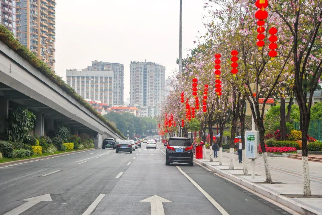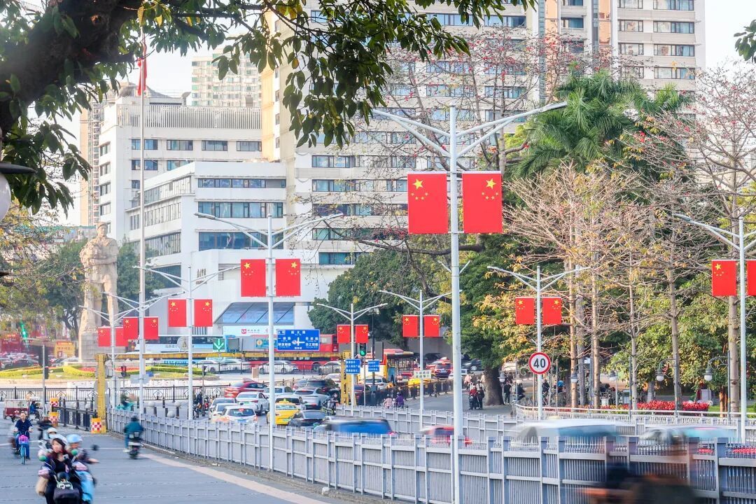 走在越秀的街说念上,放眼望去,那一抹抹飘逸的“中国红”最是动东说念主。平直的街灯杆上,飘逸的五星红旗与火红的灯笼交相衬映。微风吹过,灯笼穗轻轻扭捏,仿佛在向每一位过往的市民诉说着新春的祝福。