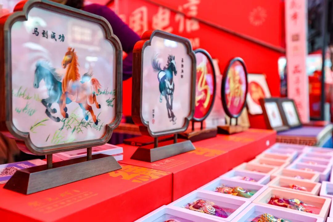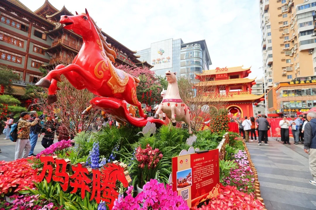 花市内不仅有“万马奔腾”主题景不雅点缀,更将广绣、打铜、榄雕等非遗瑰宝融入其中。穿行在花海东说念主潮中,买一束好运,道贺新的一年顺手安康。