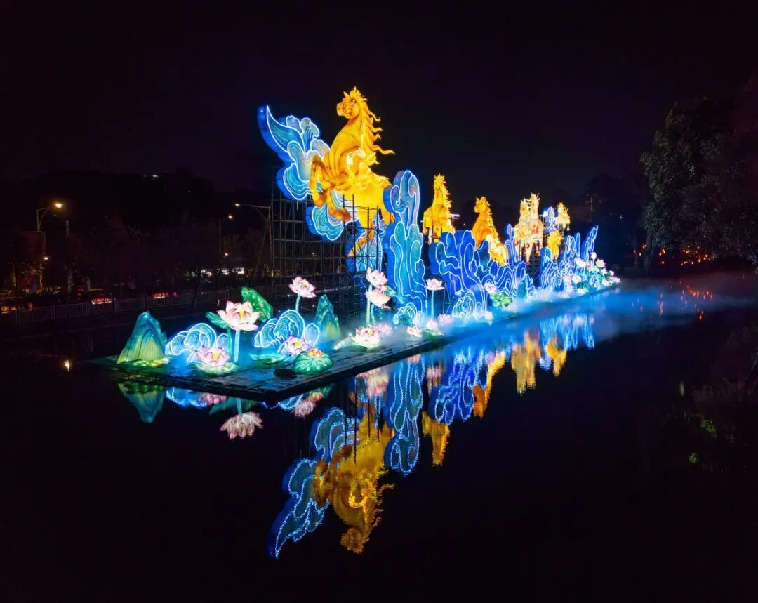 万马奔腾的灯组点亮夜空